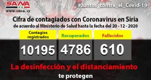 Damasco, SANA El Ministerio de Salud de Siria anunció que en la última jornada se confirmaron 145 nuevos casos de infectados por el virus Sars-Cov-2 causante de la enfermedad Covid-19. …