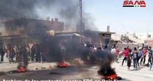Deir Ezzor, SANA Los lugareños del campo oriental de Deir Ezzor salieron hoy en masivas manifestaciones contra las prácticas de la autodenominada milicia Fuerzas Democráticas Sirias (FDS) respaldada por la …