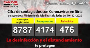 Damasco, SANA Se confirmó en la jornada del domingo, 83 nuevas infecciones por Covid-19 lo cual eleva la cifra nacional a 8403, anunció el Ministerio de Salud de Siria. Un …