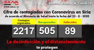 Damasco, SANA La cifra de infectados por Covid-19 en Siria ascendió a dos mil 217 tras reportar 74 nuevos casos en las últimas 24 horas, informó el Ministerio de Salud. …