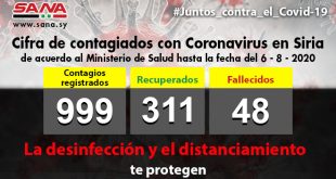Damasco, SANA A 999 asciende la cifra total de contagiados con Covid-19 en Siria tras reportar 55 nuevos casos en las últimas 24 horas. De acuerdo con un comunicado del …