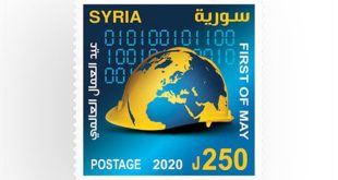 Damasco, SANA La Empresa Estatal de Correos de Siria emitió un sello postal conmemorativo por el Día Mundial de los Trabajadores, que coincide el 1 de mayo de cada año. …
