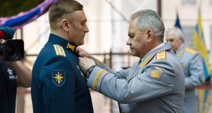Moscú, 8 may (SANA) El ministro de Defensa ruso, Sergei Shoigú, otorgó la Orden Héroe de Rusia de la Estrella Dorada a dos oficiales que participaron en la operación militar …