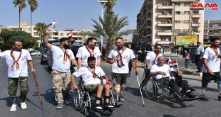 Hama, SANA Bajo los auspicios del Ministerio de Turismo, se organizó una caminata en sillas de ruedas para varios heridos del Ejército Árabe Sirio. Participaron en la caminata 10 militares …