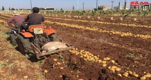 Homs , SANA Según estimaciones del Ministerio de Agricultura, la provincia central de Homs producirá este año 39 mil toneladas de papas. A continuación imágenes de la recogida de papas …