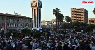 Homs, SANA Miles de personas se concentraron hoy en la Plaza del Reloj en la ciudad de Homs para celebrar el juramento constitucional que prestó el presidente Bashar al-Assad. Los …