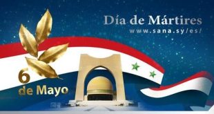 Damasco, SANA Siria conmemora el seis de mayo de cada año el Día de los Mártires, ocasión en la que el pueblo sirio rinde tributo a sus caídos en la …