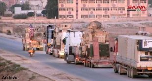 Hasakeh – Deir Ezzor, SANA Las fuerzas de ocupación estadounidenses enviaron un convoy de camiones cargados de materiales logísticos y armas a su base ilegal en el campo petrolífero de …
