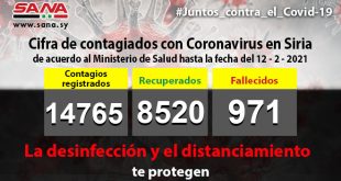 Damasco, SANA El Ministerio de Salud confirmó que 41 personas dieron positivo al Covid-19 en la última jornada, lo que asciende la cifra nacional a 14 mil 765. Asimismo, indicó …