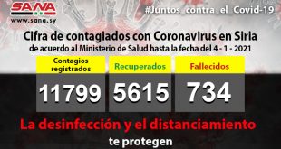 Damasco, SANA “El número de infectados por Covid-19 en Siria ascendió a once mil 890 tras reportar 91 nuevos casos en las últimas 24 horas”, informó el Ministerio de Salud …