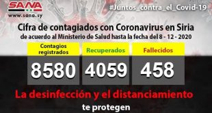 Damasco, SANA El Ministerio de Salud anunció en la jornada del martes 90 nuevos casos de COVID-19, lo cual eleva la cifra nacional a ocho mil 580 pacientes confirmados en …