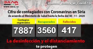 Damasco, SANA Se confirmó en la jornada del lunes, 90 nuevas infecciones por Covid-19 lo cual eleva la cifra nacional a 7887, anunció el Ministerio de Salud de Siria. Un …