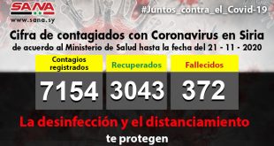 Damasco, SANA Se confirmaron en las últimas 24 horas, 75 nuevas infecciones por Covid-19 lo cual eleva la cifra nacional a 7154, anunció hoy el Ministerio de Salud de Siria. …