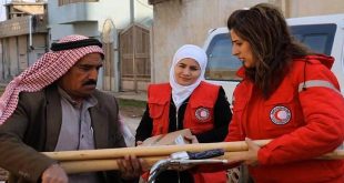 Hama, SANA La Media Luna Roja Árabe Siria (MLRAS) en Hama en el centro del país, distribuyó 2.500 ayudas agrícolas a los desplazados que retornaron a sus pueblos liberados del …