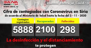 Damasco, SANA “El número de infectados por Covid-19 en Siria ascendió a cinco mil 888 tras reportar 45 nuevos casos en las últimas 24 horas”, informó el Ministerio de Salud …