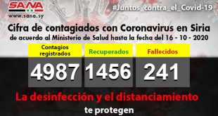Damasco, SANA Con 56 nuevos casos, la cifra de enfermos por Covid-19 llegó a cuatro mil 987, informó el Ministerio de Salud. De acuerdo con el informe, tres personas fallecieron …