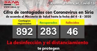 Damasco, SANA Con la confirmación de 45 nuevos casos en las últimas horas, la cifra total de contagiados por Covid-19 asciende en Siria a 892, según informó el Ministerio sirio …