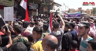 Hasakeh, SANA Los lugareños de las ciudades de Ras al-Ain y Tal Abyad en las provincias de Hasakeh y Alepo en el norte de Siria, salieron en manifestaciones contra las …