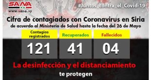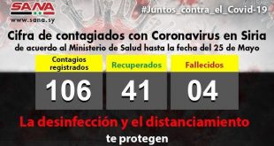 Damasco, SANA El Ministerio de Salud de Siria anunció hoy lunes, 20 nuevos contagios con Covid-19, entre los sirios repatriados recientemente del exterior. “Se detectaron 15 nuevos casos entre los …