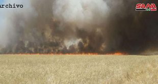 Hasakeh, SANA Bombas térmicas lanzadas por avión del ocupante estadounidense provocaron incendios en cultivos de trigo, en la provincia de Hasakeh. Bombas térmicas lanzadas por avión del ocupante estadounidense provocaron …