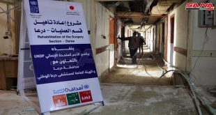 Deraa, SANA Continúan a toda marcha las obras de rehabilitación del Hospital Provincial en Deraa que sufrió ataques terroristas y actos de sabotajes durante la presencia de terroristas en la …