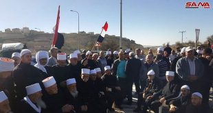Quneitra, SANA Procedentes de varias provincias, centenares de sirios se congregaron este martes en la redoma de al-Alam en la ciudad de Quneitra para solidarizarse con nuestros compatriotas en el …