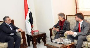 Damasco, SANA El ministro de Información, Ing. Mohammed Ramez Tutjman, examinó con la presidenta de la delegación del Comité Internacional de la Cruz Roja (CICR) en Siria, Marian Gaser, las …