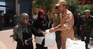 Damasco-campo, SANA Se distribuyeron este sábado ayudas humanitarias ofrecidas por Rusia a los desplazados que se encuentran en la zona de Shaam al-Maarafe ubicada en la localidad de Sahnaya en la …