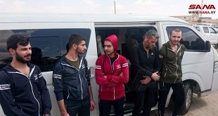 Alepo, 13 jun (SANA) El corresponsal de SANA informó hoy que cinco personas secuestradas fueron liberadas por el Ejército Árabe Sirio. Los liberados fueron entregados al ejército sirio a través …