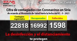 Damasco, SANA Se confirmaron en la última jornada del viernes, 30 de abril, 102 nuevos casos de Covid-19 para un acumulado nacional de 22.733. Según una nota difundida por la …