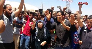 Deraa, SANA Decenas de personas se congregaron este miércoles en la plaza central de la localidad de al Ghariya al Gharbiya en el campo de Deraa para celebrar su liberación …