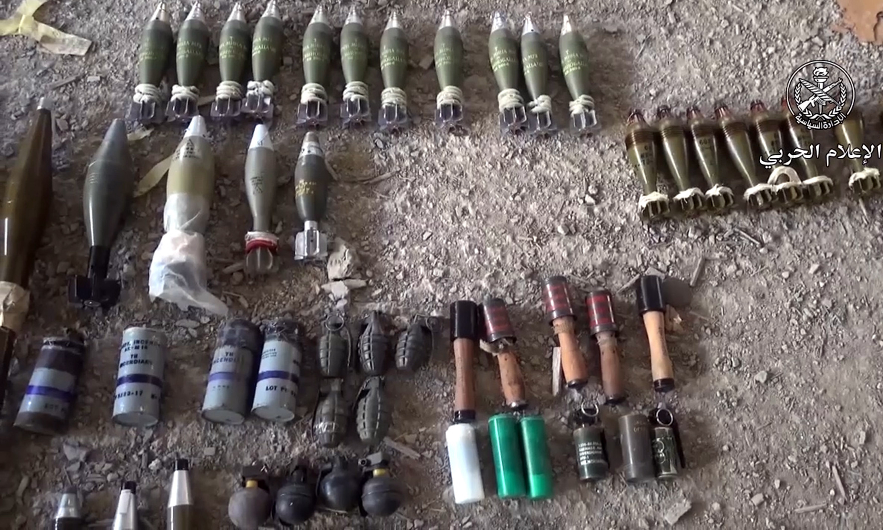 Durante sus operativos de peinado llevados a cabo en la localidad de Yalda en los extremos sureños de la capital Damasco, las autoridades competentes encontraron armas y municiones, algunas son de fabricación occidental.
