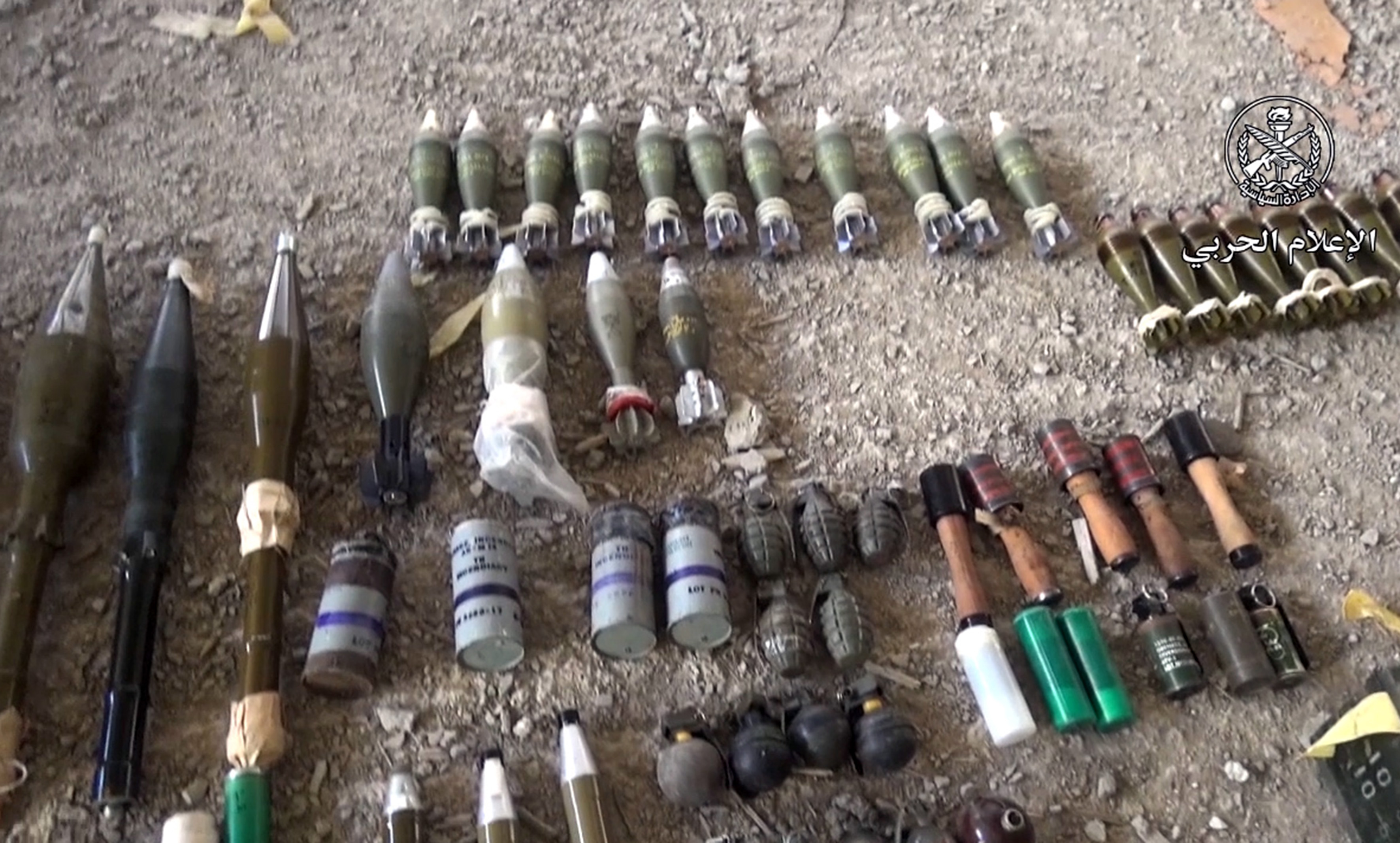 Una fuente militar informó que las armas encontradas incluyen misiles de fabricación estadounidense e israelí, cientos de miles de balas, proyectiles, y armas ligeras y medianas.