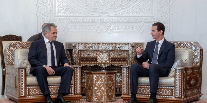 El presidente Bashar al-Assad, recibió este martes en la capital Damasco al ministro de Defensa de Rusia, Serguei Shoigú, con quien abordó el desarrollo de la guerra contra el terrorismo en Siria.