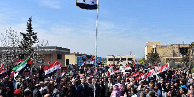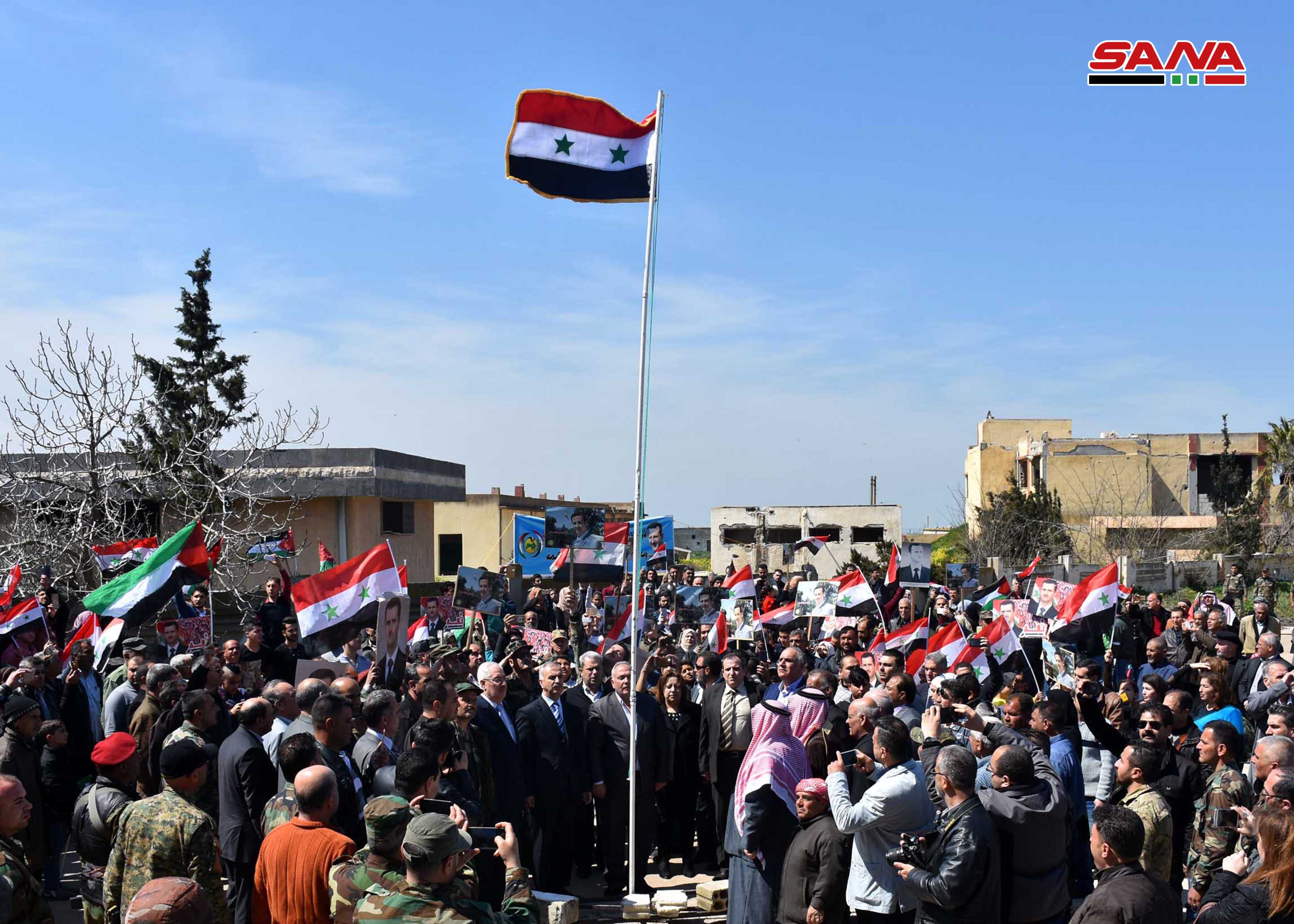 La bandera siria fue arbolada en la plaza central de al-Buaida al-Sharkiya en medio de la alegría de sus pobladores que expresaron su júbilo coreando consignas a favor del presidente, Bashar al-Assad, y de los héroes del Ejército sirio quienes liberaron la zona de al-Qsseir donde se encuentran sus hogares de la presencia terrorista.