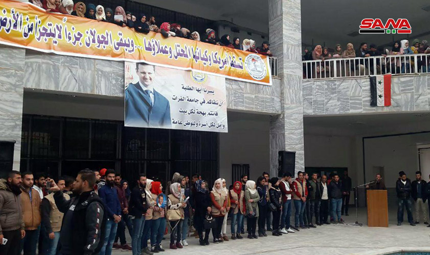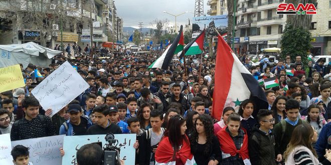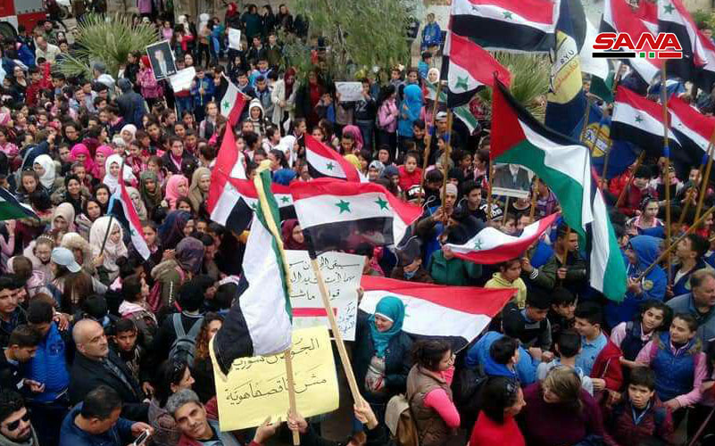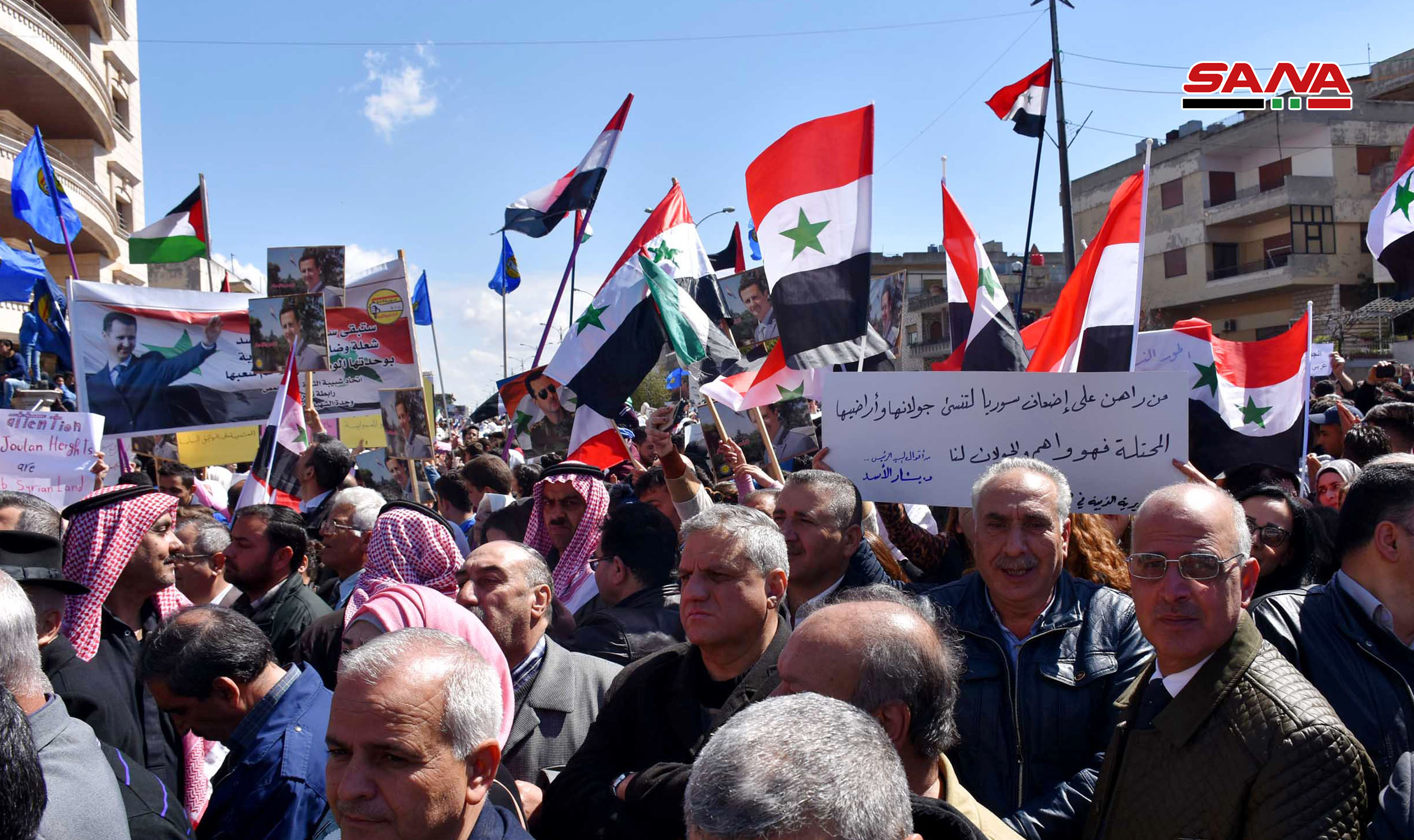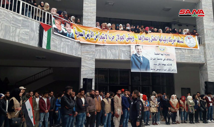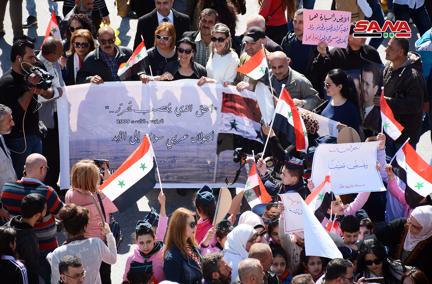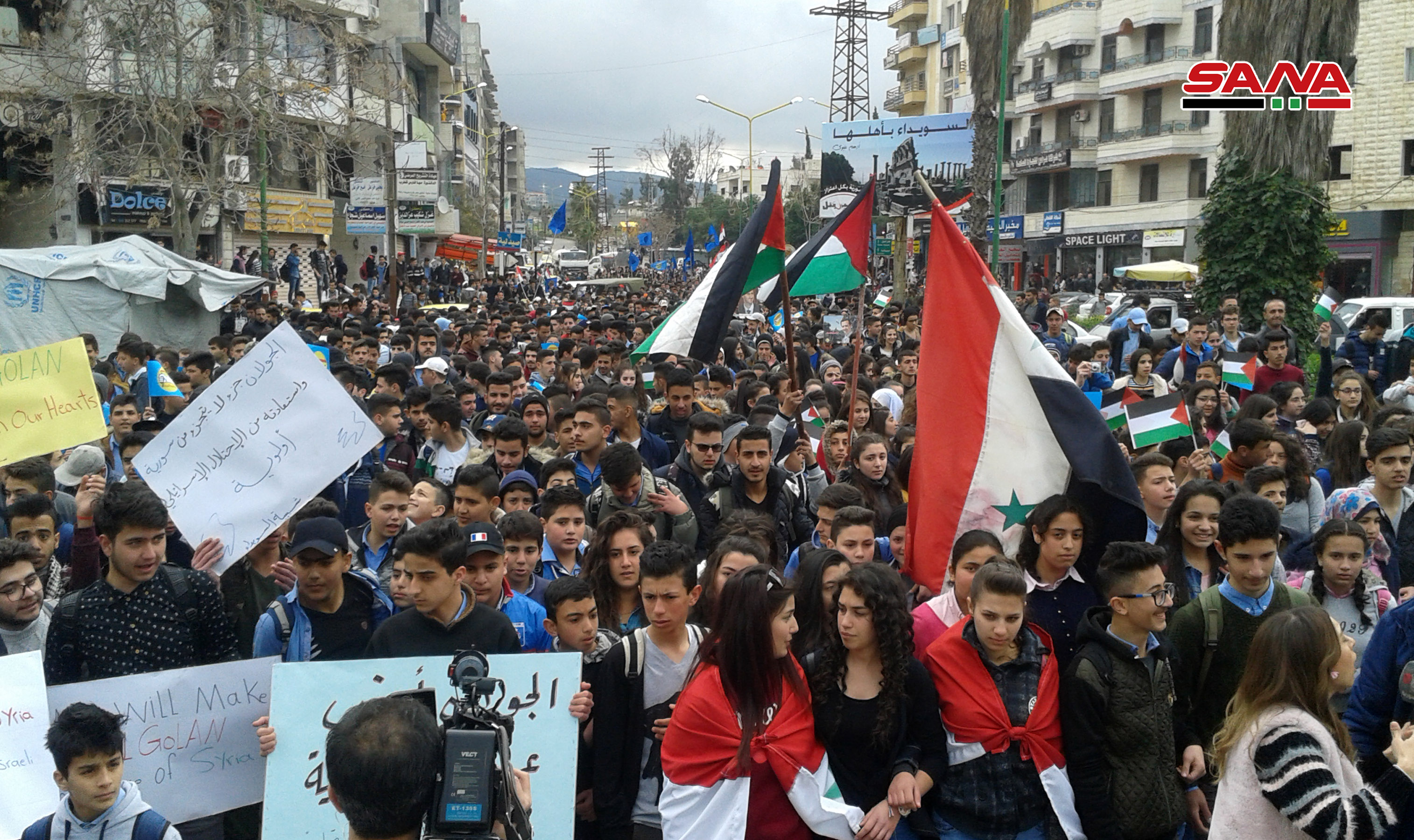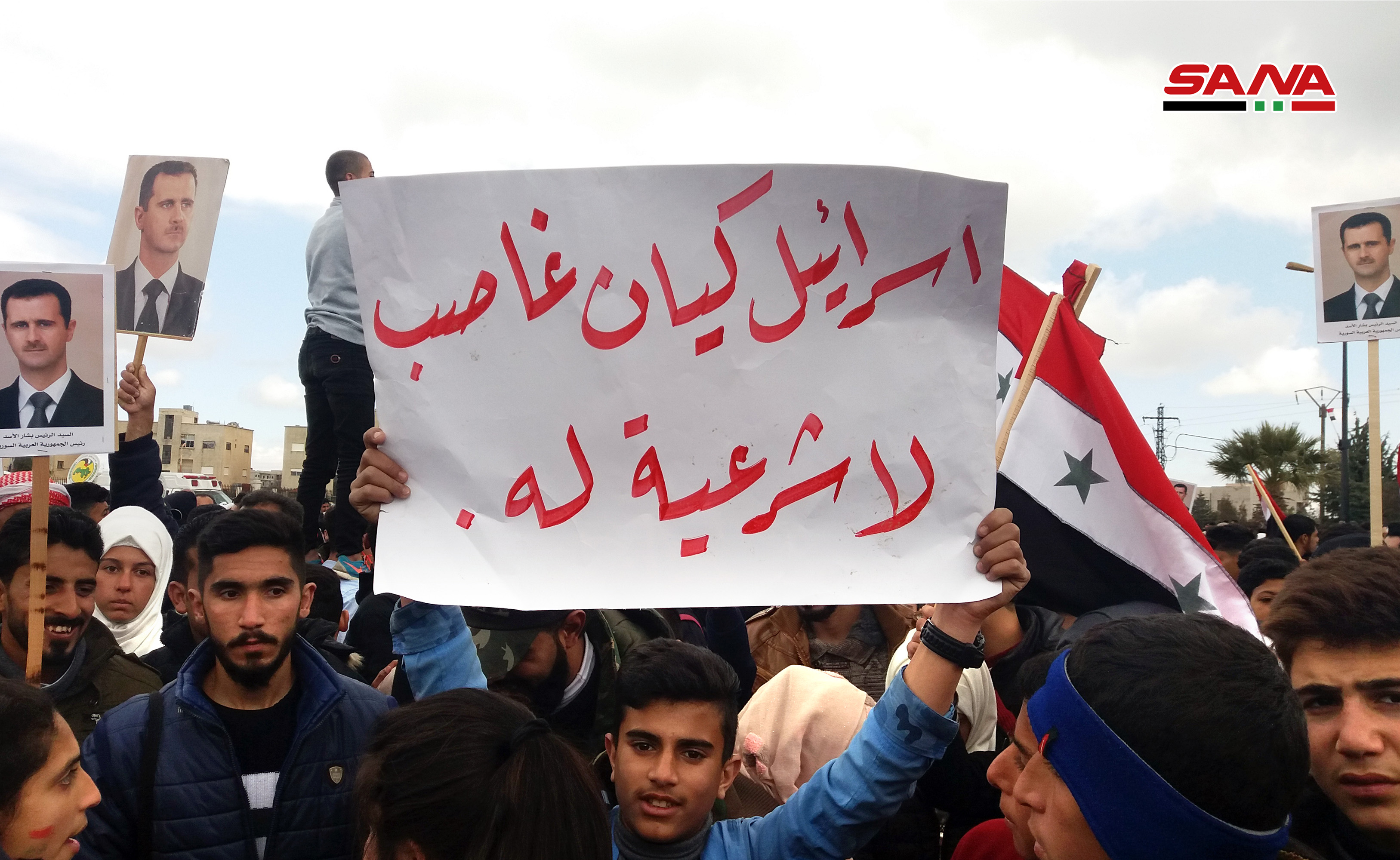 Los ciudadanos sirios salieron en masivas marchas para protestar y condenar la decisión del presidente de Estados Unidos de reconocer la anexión de Israel” al Golán sirio ocupado.