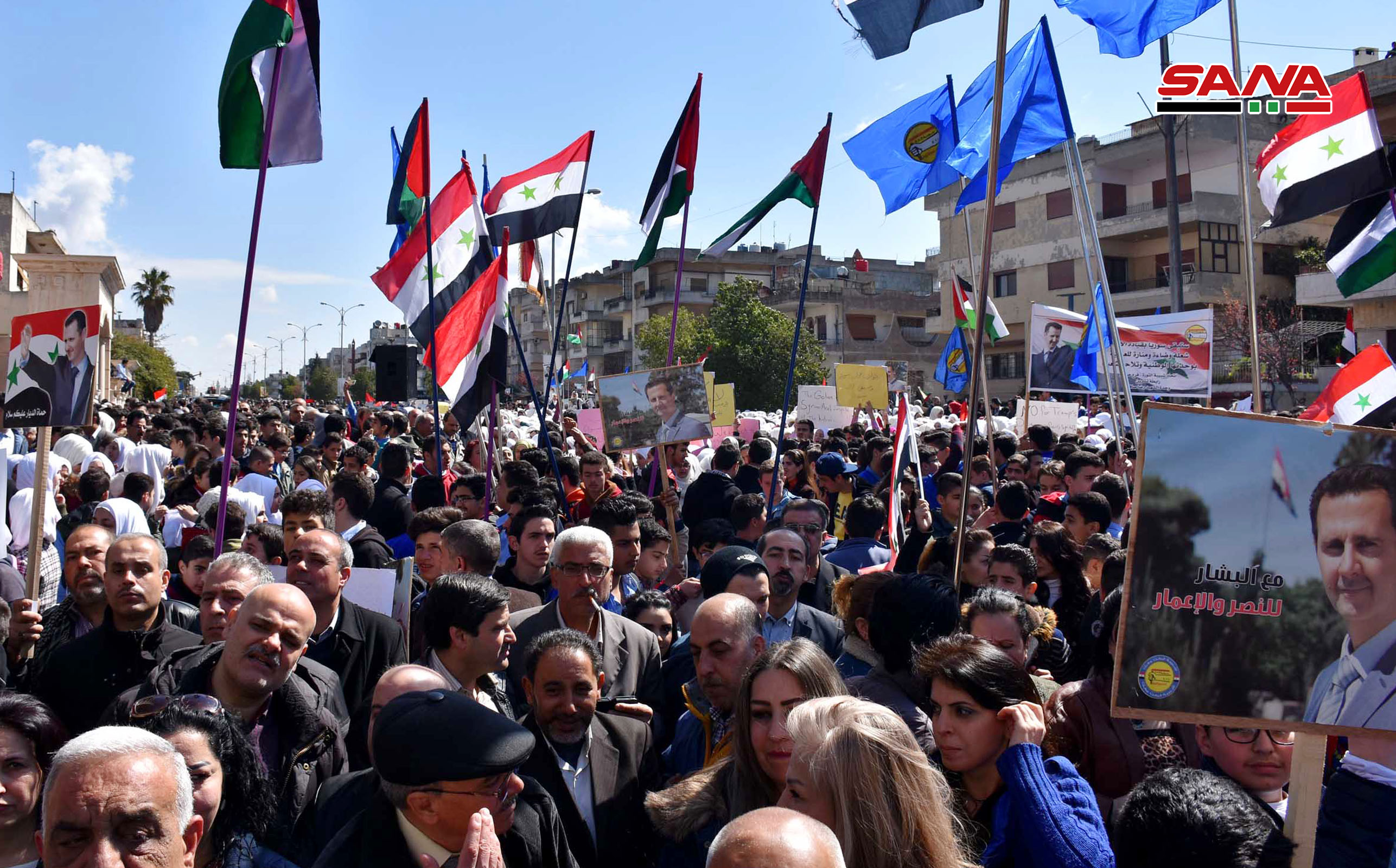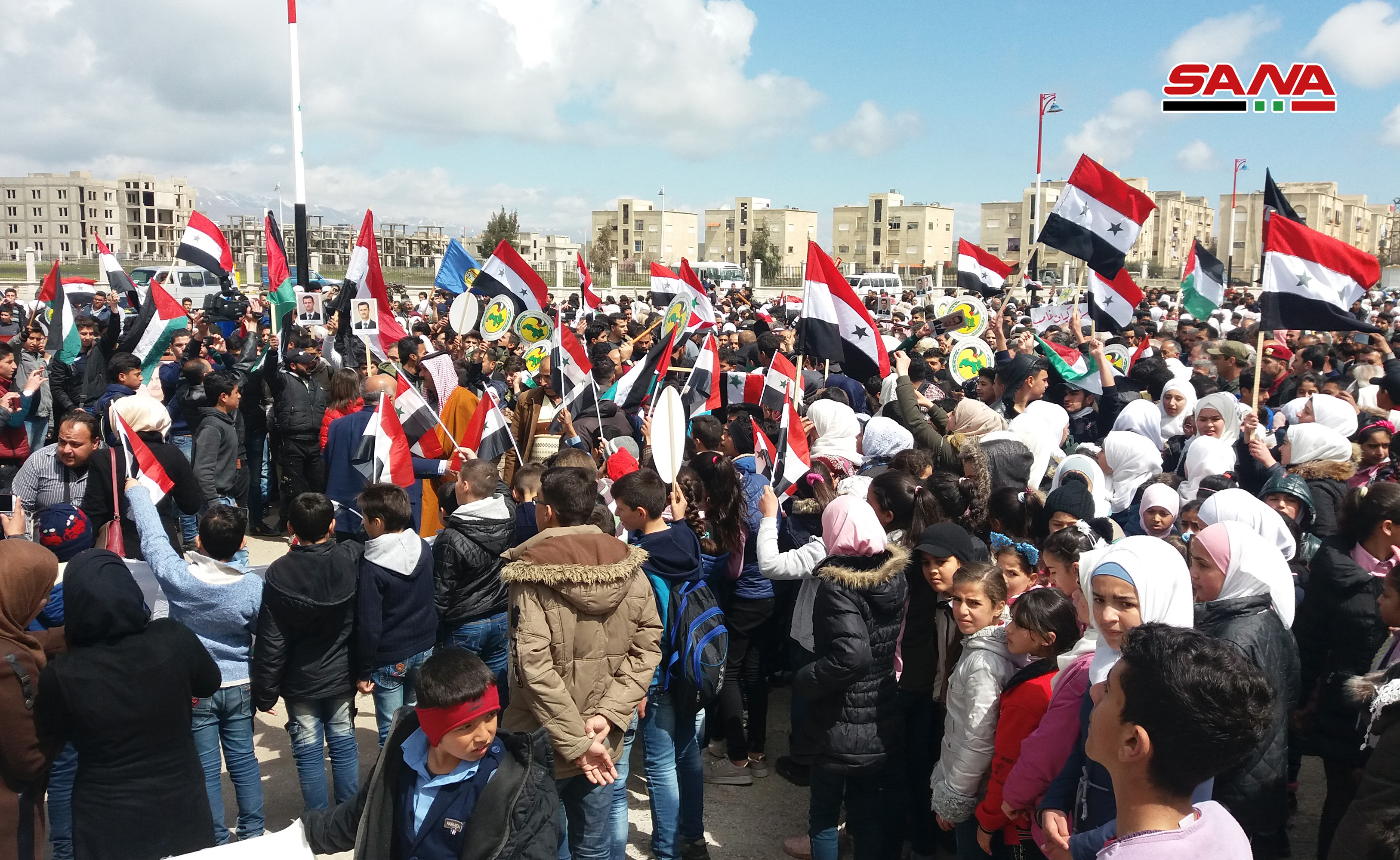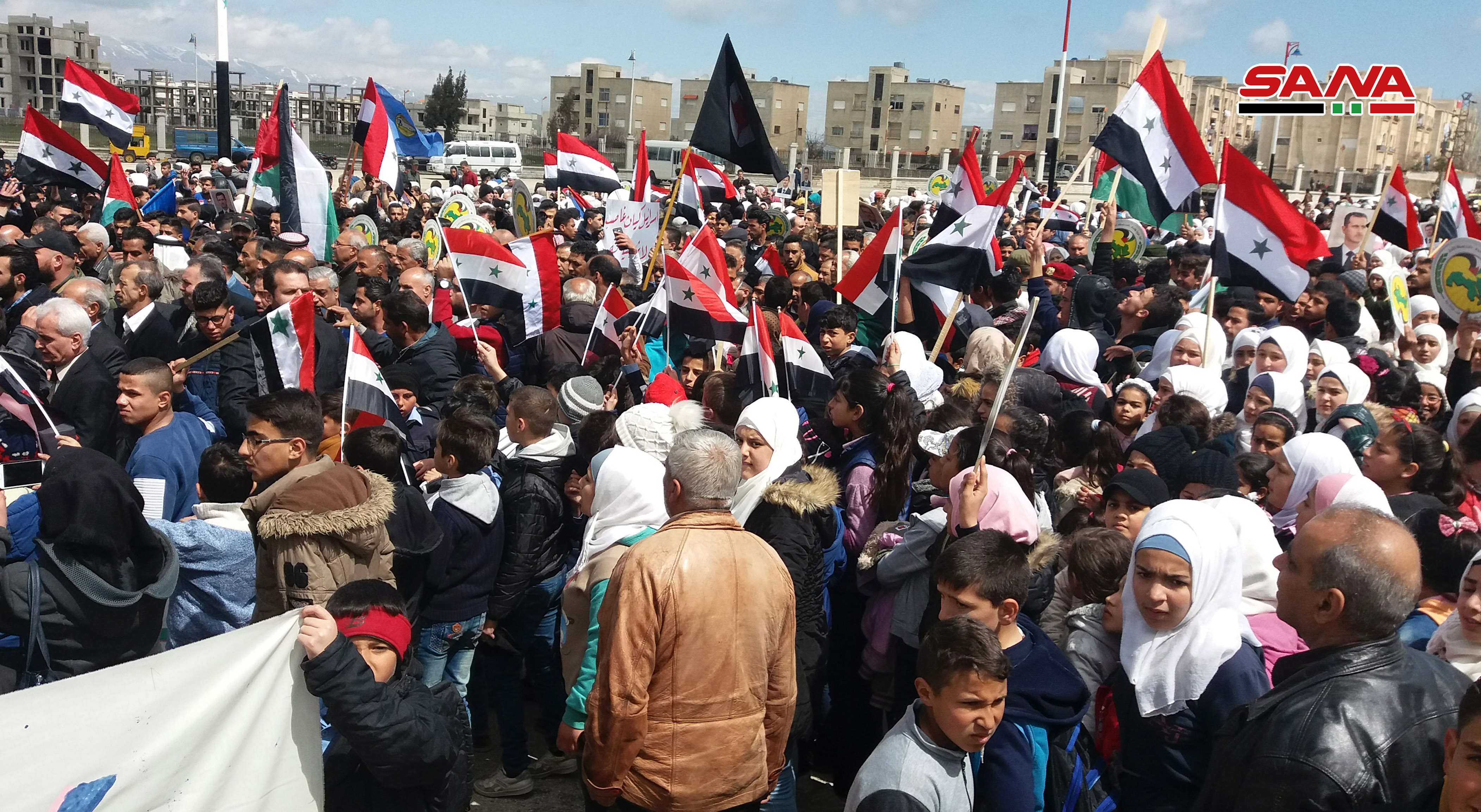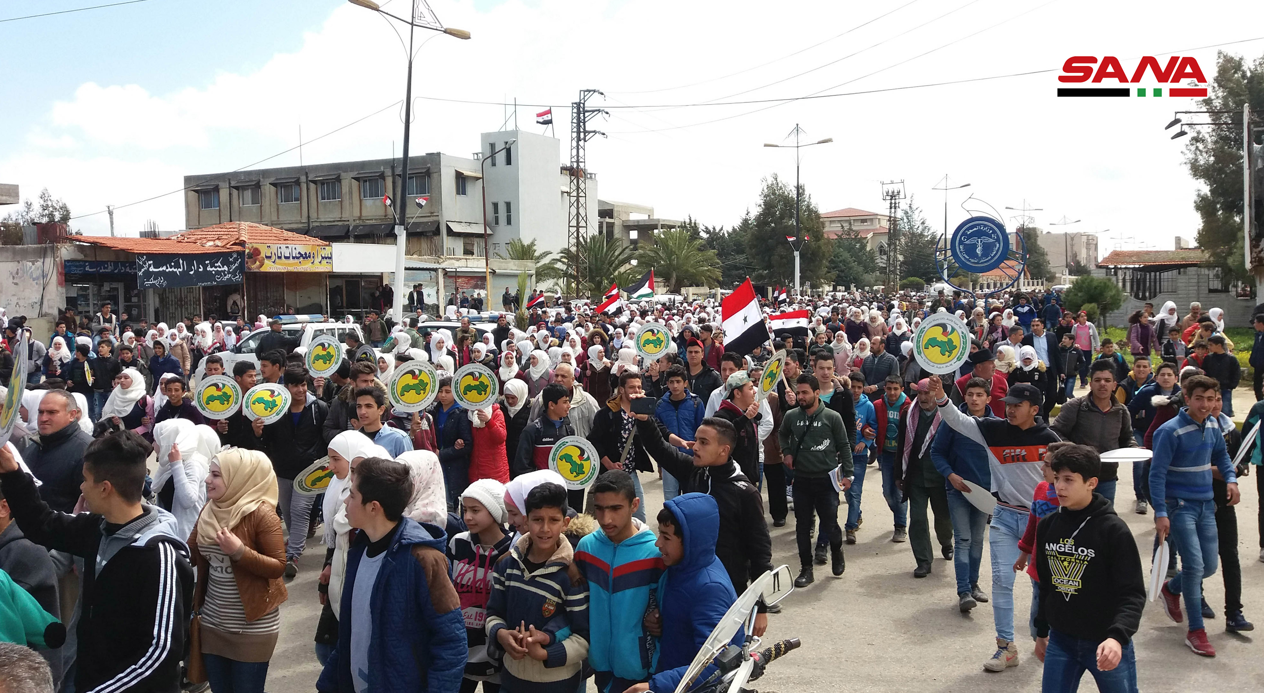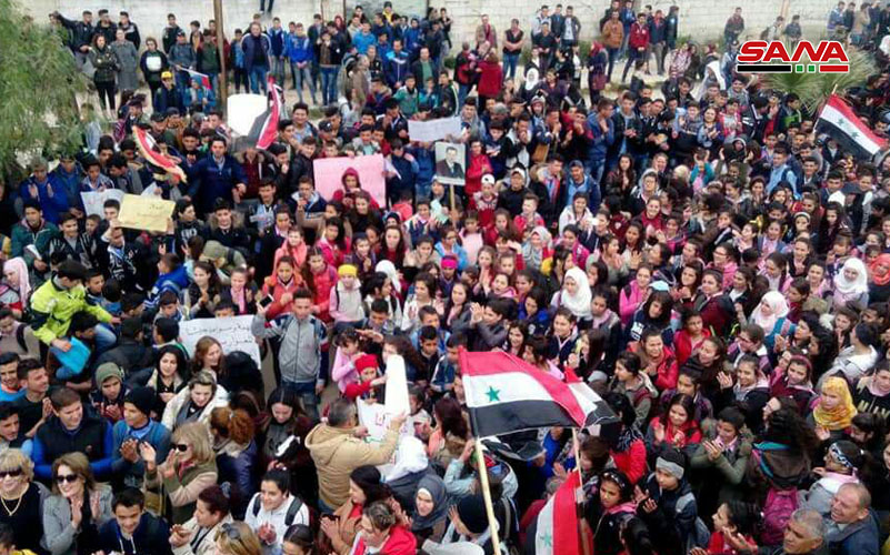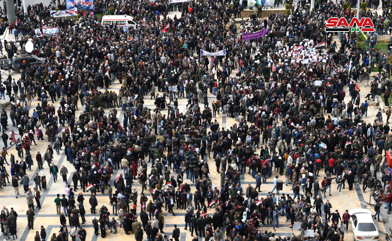Los ciudadanos sirios salieron en masivas marchas para protestar y condenar la decisión del presidente de Estados Unidos de reconocer la anexión de Israel” al Golán sirio ocupado.