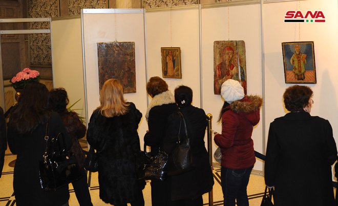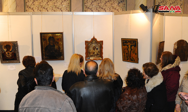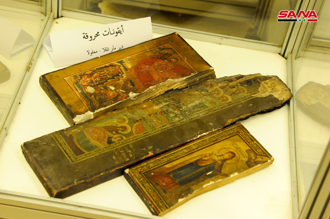 También, se exhibieron iconos de la antigua ciudad de Maloula que fueron quemadas y destruidas por los terroristas y actualmente están siendo restauradas.