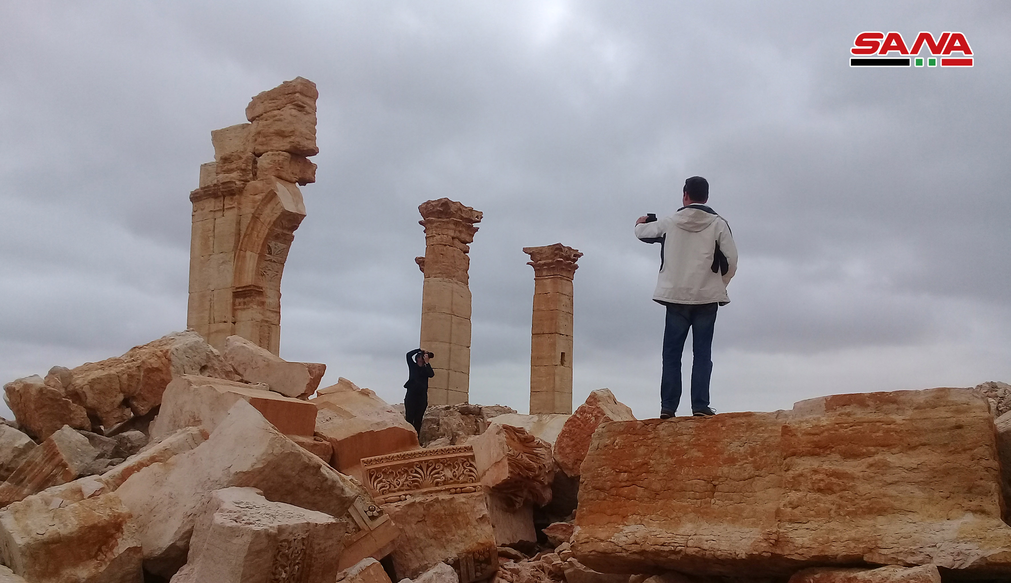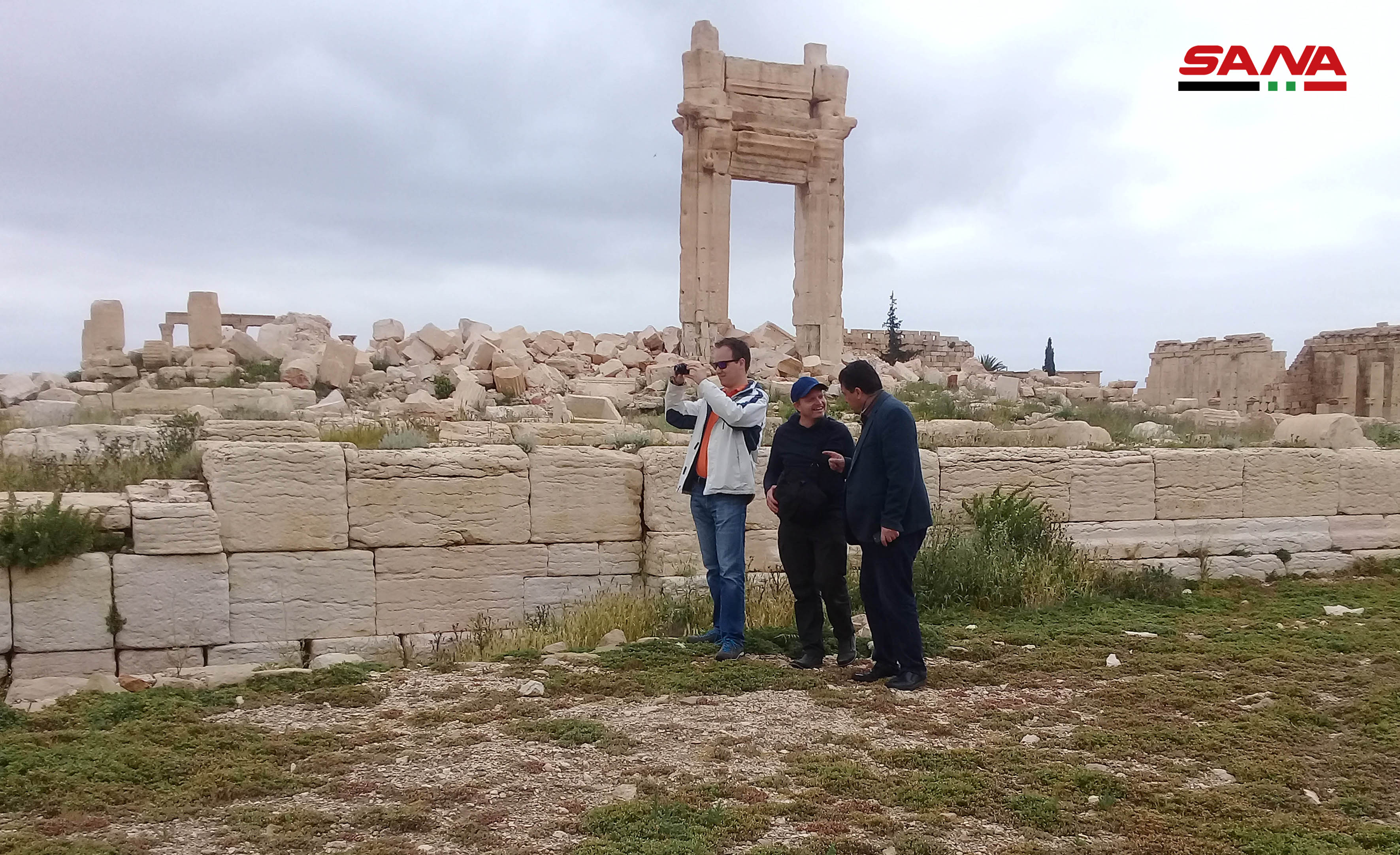 Los turistas recorrieron los principales monumentos históricos y documentaron la destrucción causada por los terroristas del Daesh que durante su ocupación de Palmira, procedieron a dinamitar el antiguo templo Bel, la fachada del anfiteatro romano y el tetrápilo.