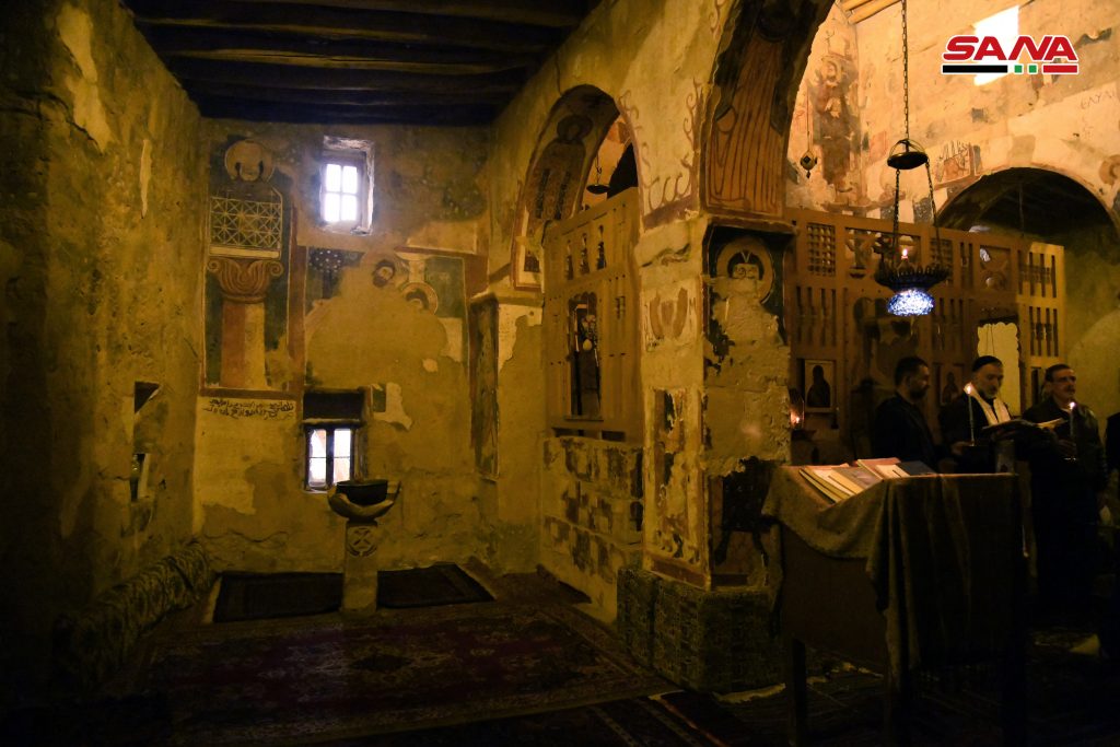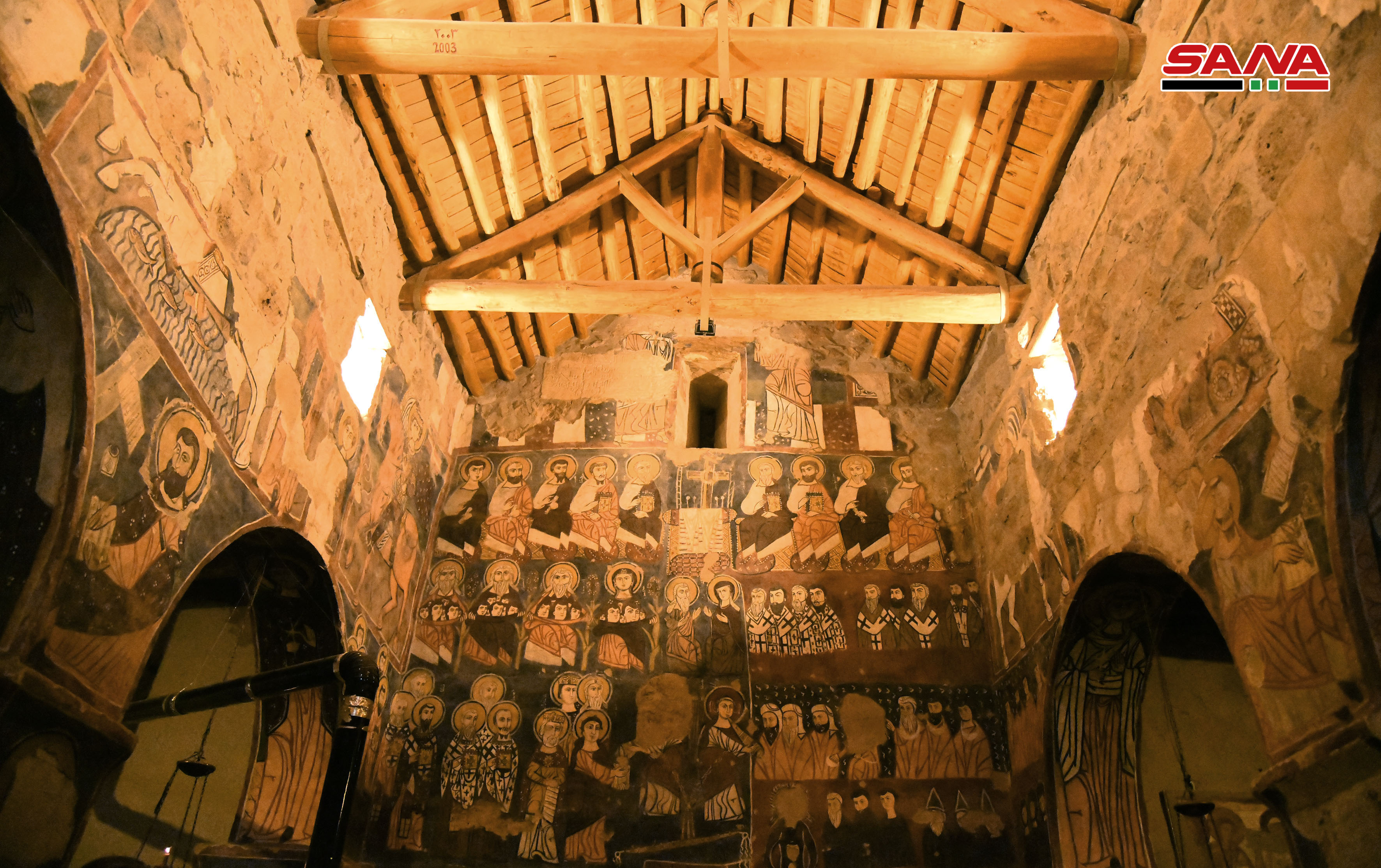 El monje Jihad Yousef señaló en su declaración a SANA que dicha iglesia alberga frescos influidos por el arte helenístico, bizantino y siríaco.