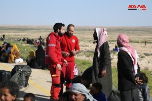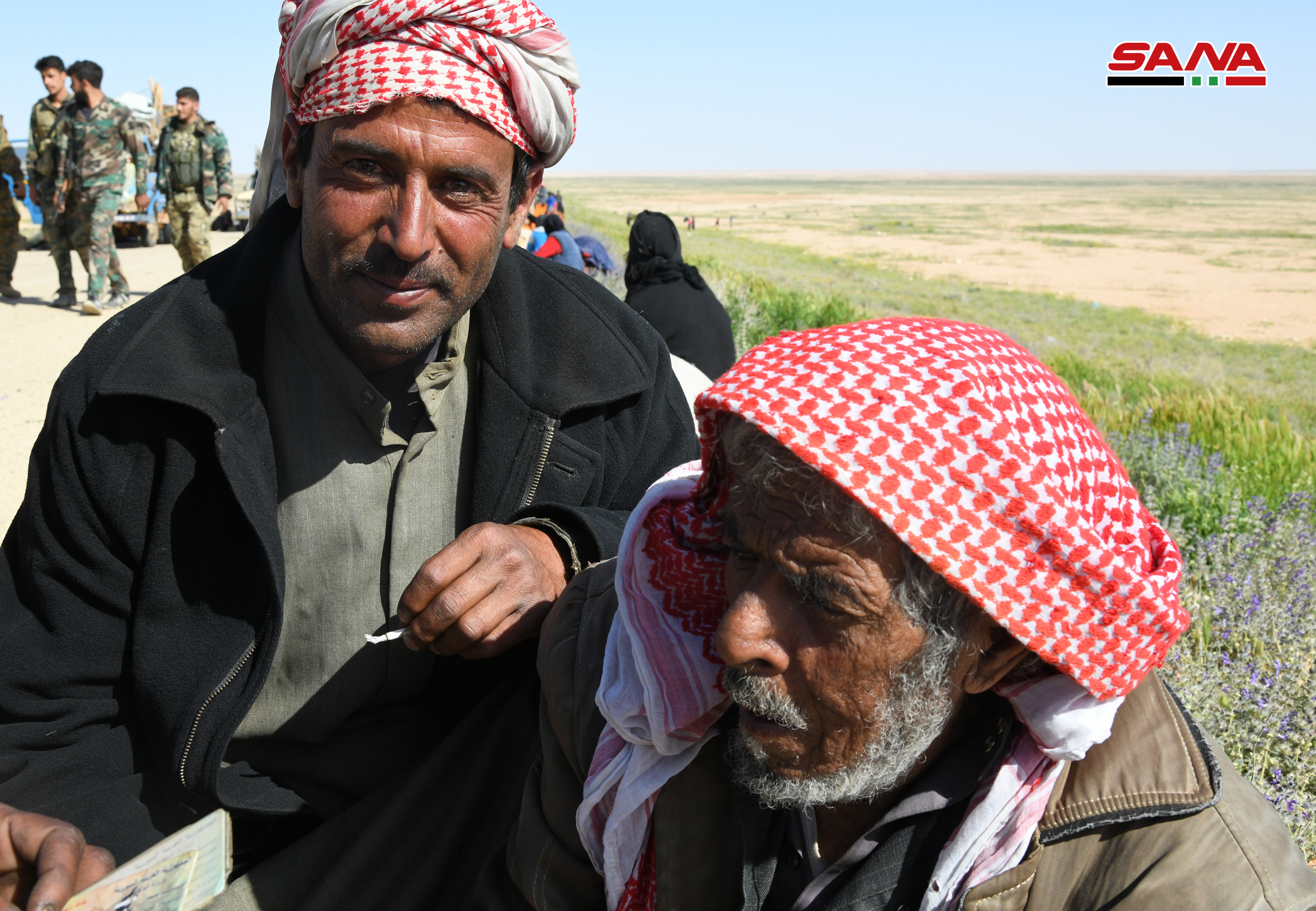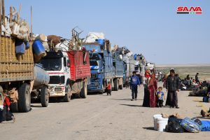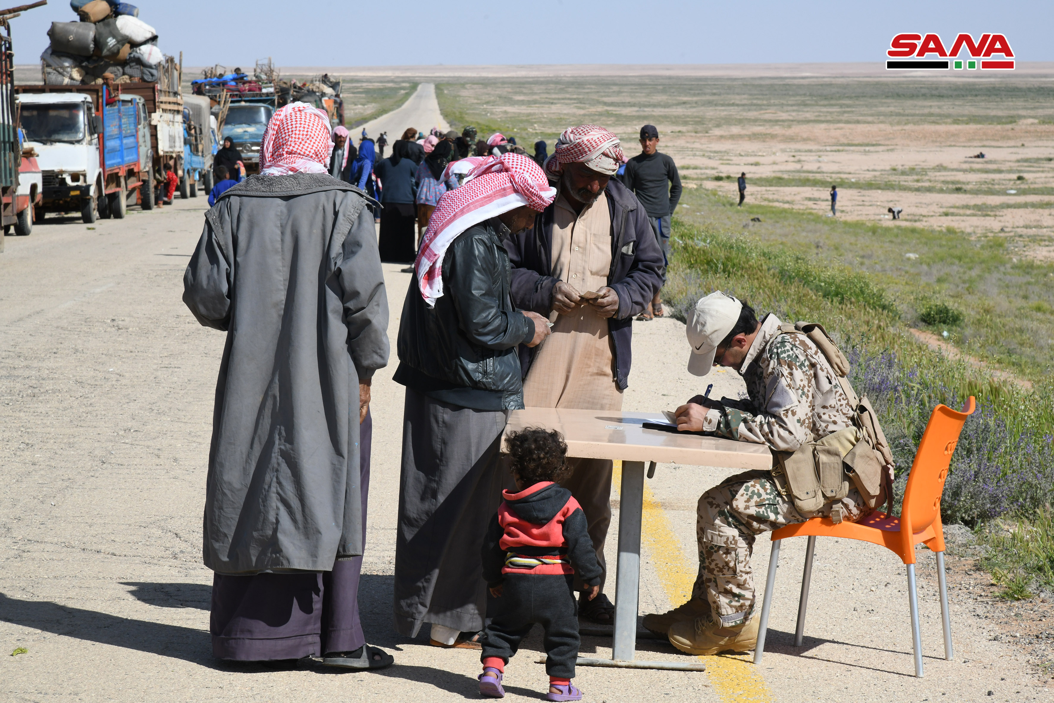 Nuevo grupo de familias desplazadas llegaron este sábado al corredor Jeleguem, establecido por las autoridades siria y rusas para recibir a los desplazados procedentes del campamento Rukban, ubicado en el triángulo fronterizo entre Siria, Jordania e Irak, y donde las tropas de ocupación estadounidenses y sus mercenarios terroristas retienen a miles de civiles.