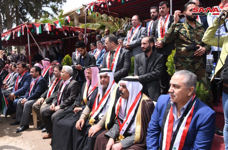 Algunos dignatarios y representantes sociales pronunciaron palabras en las que aseguraron que los enemigos de Siria apostaron por Ghouta Oriental pero su apuesta fracasó debido al apego del pueblo a su ejército que derrotó el terrorismo en Ghouta.