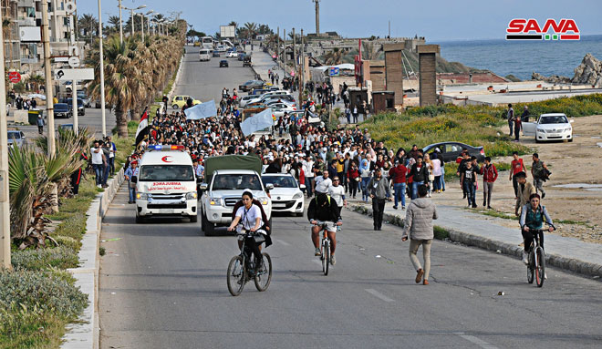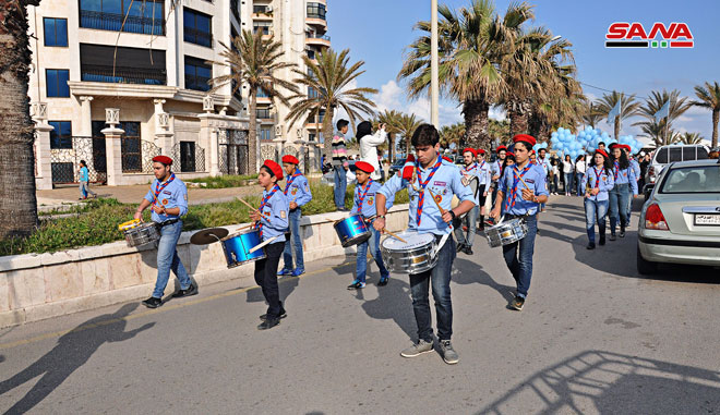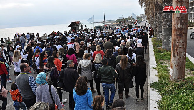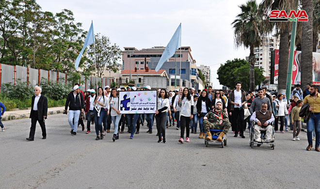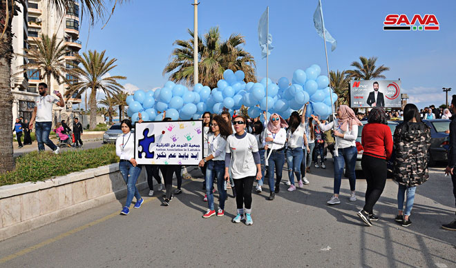 La caminata fue organizada por la Sociedad de Autismo en Latakia en cooperación con la Asociación siria para el Fomento, la Organización italiana de Tierras Humanas y la Comisión siria de Asuntos de la Familia.