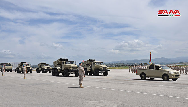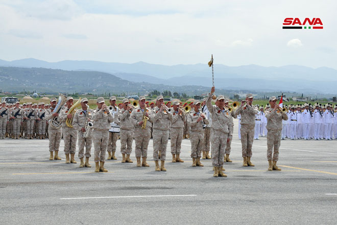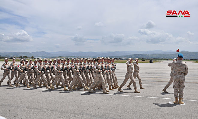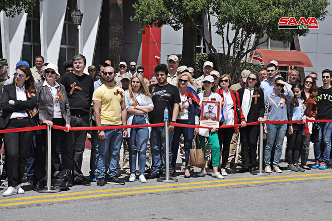 El Mando de las fuerzas rusas operativas en Siria realizó un acto central en la base de Hmeimim en Latakia por el Día de la Victoria sobre el Nazismo en la Gran Guerra Patria; el acto fue presenciado por Manssour Azzam, ministro de Asuntos de la Presidencia de la República.