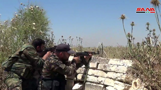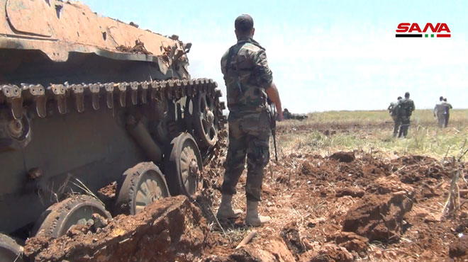 15/05/2019 Hama, SANA Qalaat Al Madiq E. Dubian SANA acompaña al ejército sirio en el frente de lucha contra el terrorismo en el norte de Hama 2019-05-15 Esraa