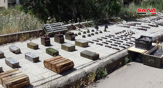 20/05/2019 Deraa, SANA E. Dubian Ejército halla armas y municiones remanentes en los terroristas en provincia de Deraa 2019-05-20 Esraa
