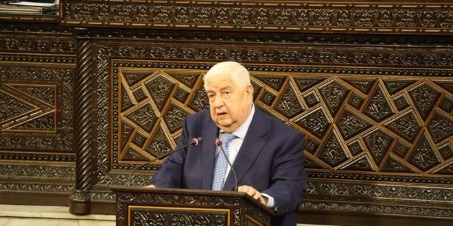 El ministro de Exteriores y Expatriados, Walid Al-Moallem, explicó ante la Asamblea del Pueblo (Parlamento) las fases la guerra terrorista prendida contra Siria desde 2011, y la actual política, tanto regional como internacional, respecto a los sucede en Siria.
