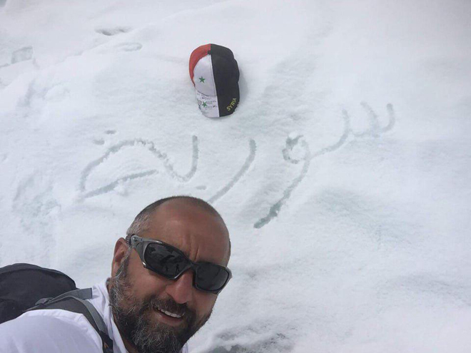 El alpinista sirio Samer Aqad ha alcanzado la cima del Everest, el pico más alto del mundo (8848 m), donde plantó la bandera siria.
