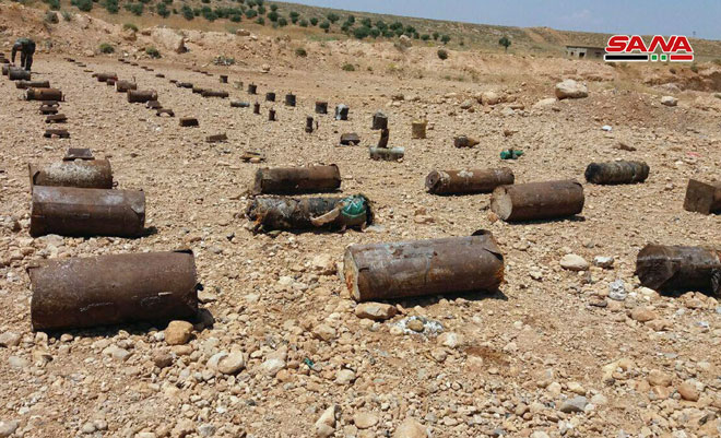 Grandes cantidades de explosivos fueron hallados por los militares sirios durante sus operaciones de peinado en las zonas liberadas del terrorismo en el campo de la provincia de Quneitra, en el sudoeste del país.