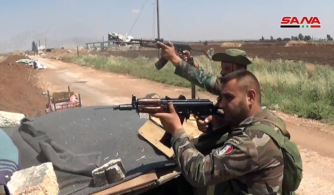 El reportero de SANA informó que unidades del ejército entablaron combate con escuadras que asaltaron los puntos militares por el eje de Hamamiyat en un repetido intento por crear una cabeza de puente, y les destruyeron dos vehículos con misiles teledirigidos, mientras los restaros retrocedieron hacia su retaguardia más al norte.